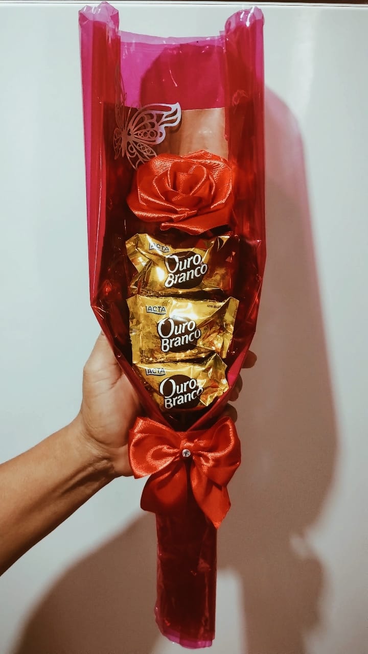 Rosa de cetim com bombons